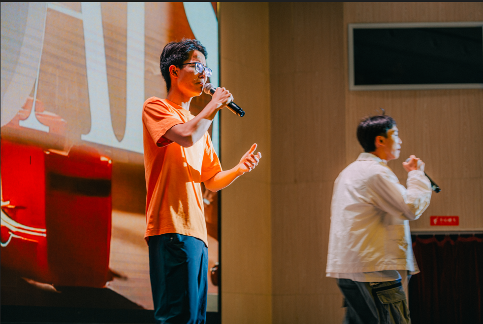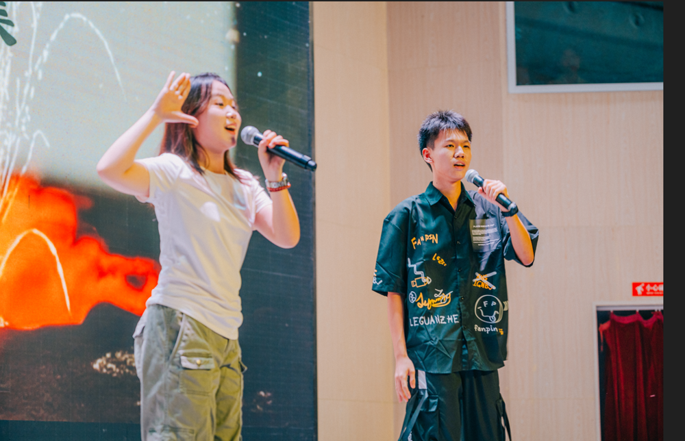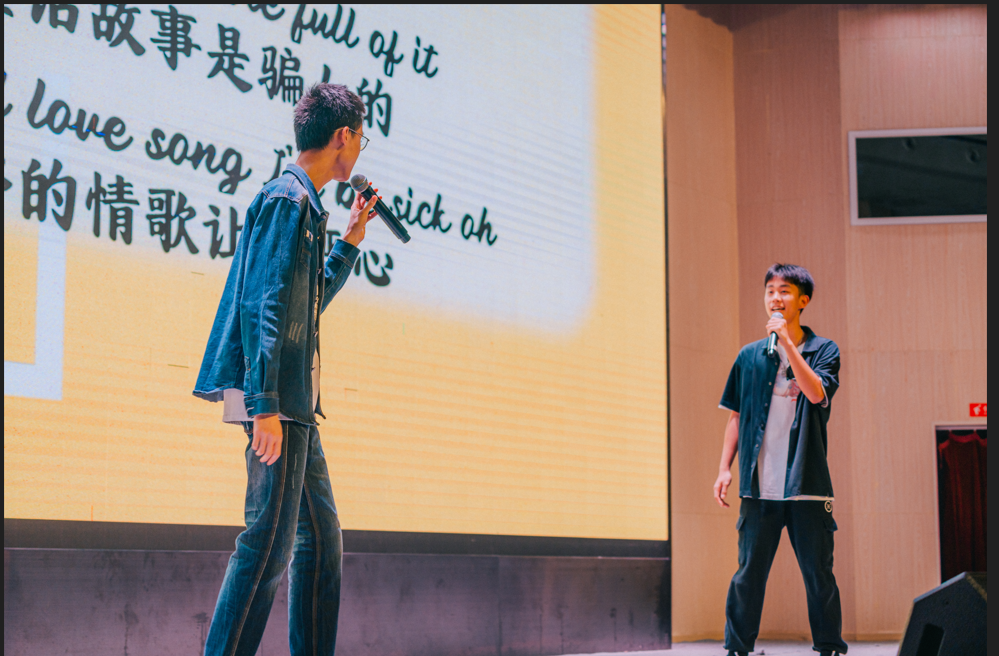 互动亮点:吉他弹唱复刻Coldplay经典,尹子周与高一级级长廖浩生老师拿麦对唱互动更是将全场气氛推向高