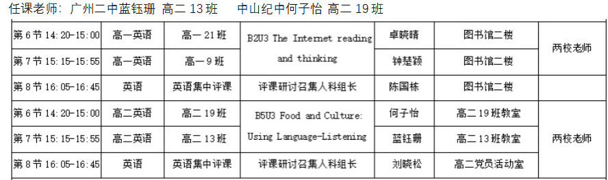 ——广州二中与中山纪中B5U3“Food and Culture”听说课同课异构活动纪实