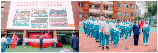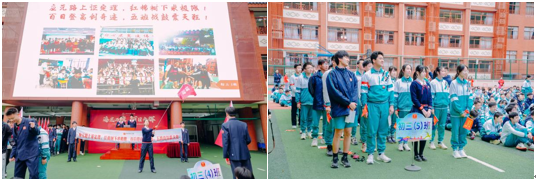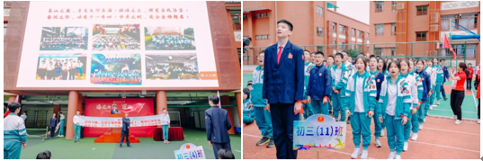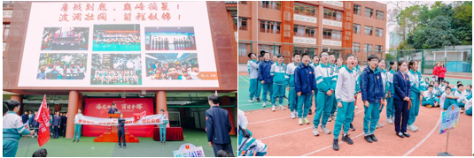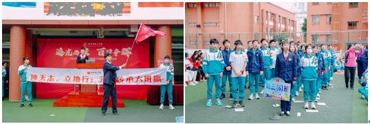 仪式最后,李绮华副校长为初三各班授旗,各班同学依次起立,随着班级旗帜的飘扬,喊出了各班那响亮的口号。此间壮志,已凝为越秀山下一曲奋进长歌!