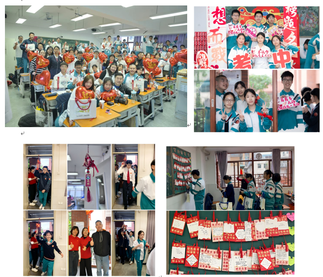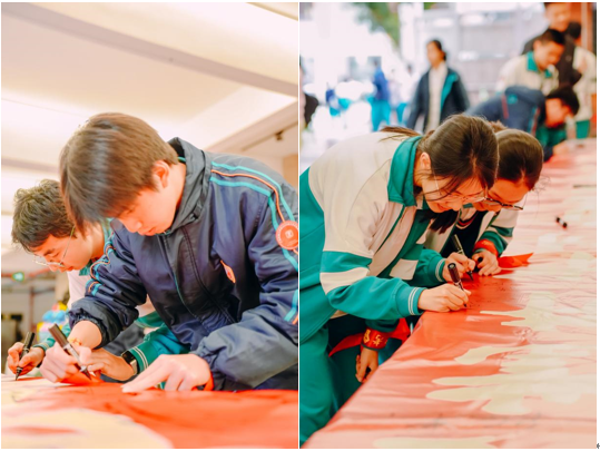 各班级、班主任和家委精心策划了班会课,学生们有的写下自己的中考心愿,有的进行富有趣味的祝福仪式,科任老师都来到班级现场给孩子们打气,家委们还即兴挥毫为同学们送上最真挚的祝福等。这些精心安排的环节,都给学生们留下了深刻的印象。