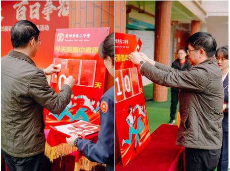 随后,德育处罗杰明副主任登台勉励学子“以恒心破万难”,雷建平副校长亲手为百日倒计时揭牌,将仪式推向高潮。