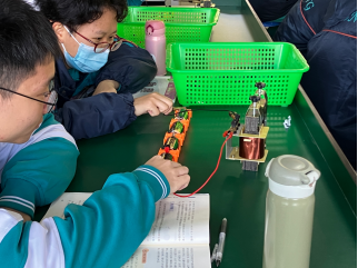 谭宜洁老师在高二4班讲授的《自感》,先邀请学生进行“千人震游戏”引入新课,激发全体学生的兴趣。谭老师不仅对实验现象进行逻辑严密的理论分析,还利用自制教具进行对照实验,直观清晰地展现自感现象,使学生一目了然。谭老师通过讲述亨利发现自感现象的小故事,渗透对学生的品质教育。物理源于生活,谭老师与学生合作完成电火花打火实验,模拟生活中的燃气灶点火原理,向学生传达将物理知识应用到生产生活实践中的理念。