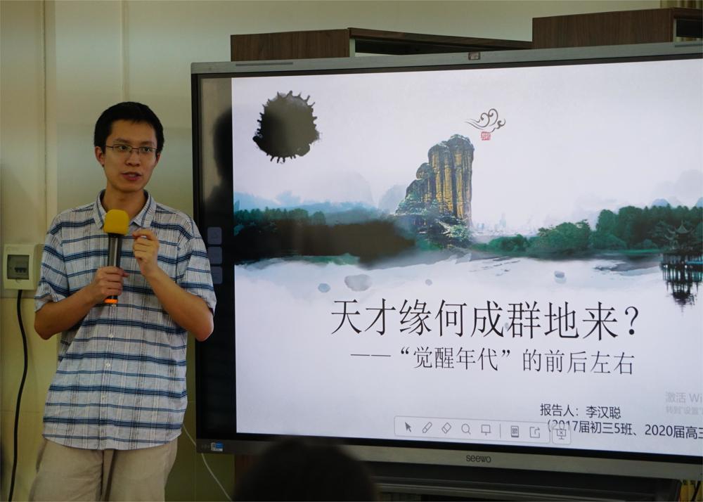 流年如白驹过隙,伴随着每日清晨的朗朗读书声从北冥湖飘扬到深圳大学的文山湖,转眼间二中校友李汉聪迎来了他的本科毕业。在行将负箧北京之际,他与昔日二中好友回到了二中校园。6月17日下午的学海堂四楼,几代“义忠仁”们济济一堂,在汉聪学长的带领下,共访民国时代大先生们的精神世界。