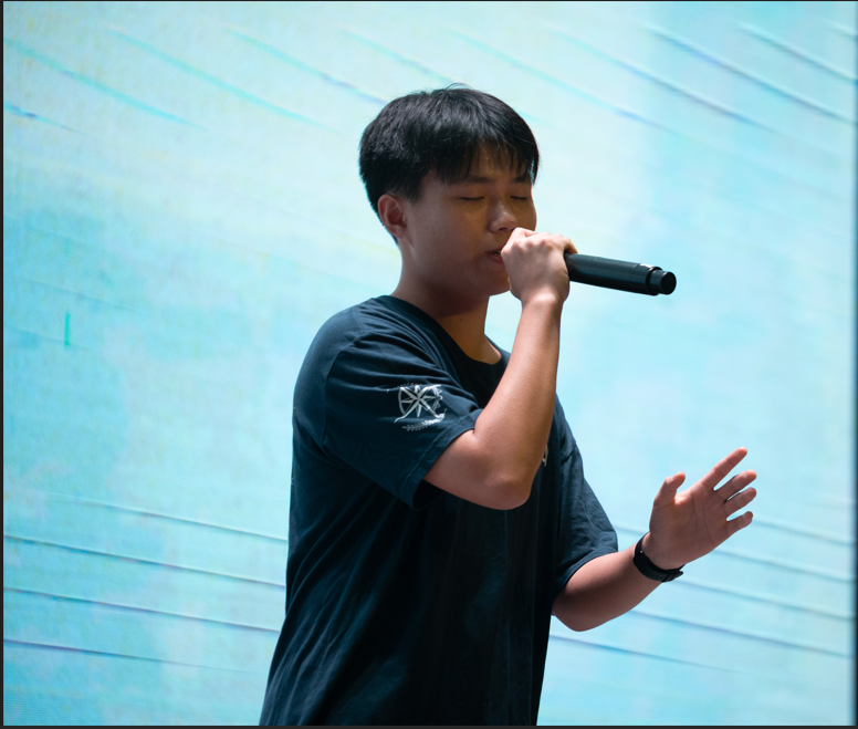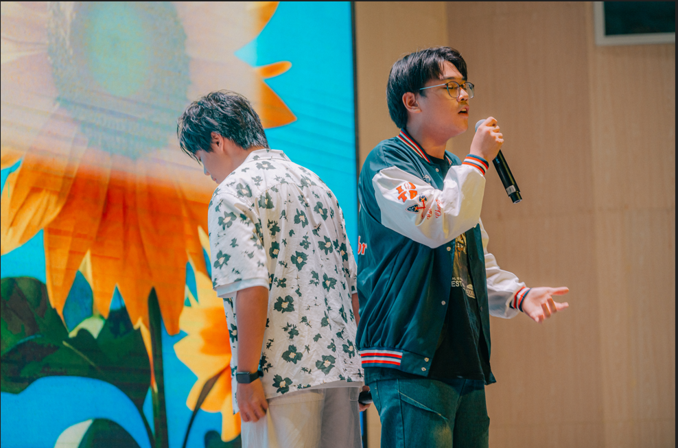 互动亮点:吉他弹唱复刻Coldplay经典,尹子周与高一级级长廖浩生老师拿麦对唱互动更是将全场气氛推向高