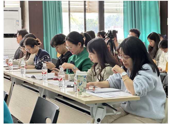 课后,中山纪念中学与广州二中的老师们齐聚一堂,共同开展了深入的评课交流活动。首先是两位老师分享了本次授课内容的教学思路及设计,以及备课过程中的不断修改和尝试。之后,中山纪念中学的陈老师、广州二中杨雅碧老师、朱惠君老师和麦艳文老师等多位老师对两节课的教学整体设计、课堂亮点、AI教学赋能,课堂实施及成果效果等多维度进行了点评。